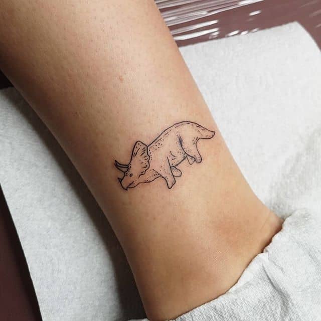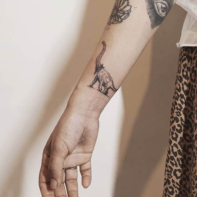 Основний сенс татуювання динозавр – це сила, стійкість і витривалість. Але, звичайно, багато залежить від стилю виконання. Наприклад, якщо вибирають реалістичне зображення велоцираптора – хижого динозавра, що ходить на двох ногах – хочуть показати свою завзятість, здатність виживати за будь-яких обставин. Якщо ж мова йде про веселе динозаврика в мультиплікаційному стилі, то це скоріше говорить про доброту, авантюризм, любов до пригод і відкриття нового. В цілому ж татуювання динозавр підійде людям, які: