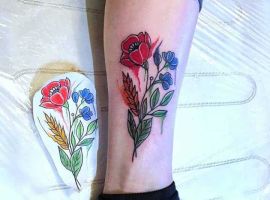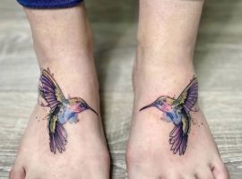 Кольорові татуювання внизу ноги виглядають дуже жіночно і романтично. Якщо стиль одягу дами вільний і не передбачає суворого дрес-коду, то будь-які орнаменти в кольорі здатні лише підкреслити красу ніг.