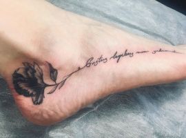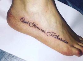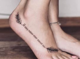- Відкриті послання. Тату на ногу здатна нанести тільки жінка з певними рисами характеру. Такі красуні, як правило, хочуть повідомити всім про свою внутрішню свободу. Часто на нозі прямим текстом пишуть свої висловлювання, улюблені фрази, гасла, а також емблеми різних спільнот (меншин).