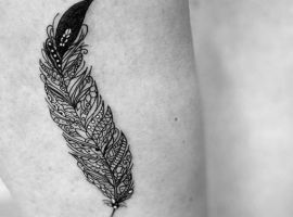 Перо – витончене зображення, що складається з безлічі тонких ліній. Завдяки складності зображення воно виглядає красиво саме на нозі значенння його – творча, легка натура власниці.