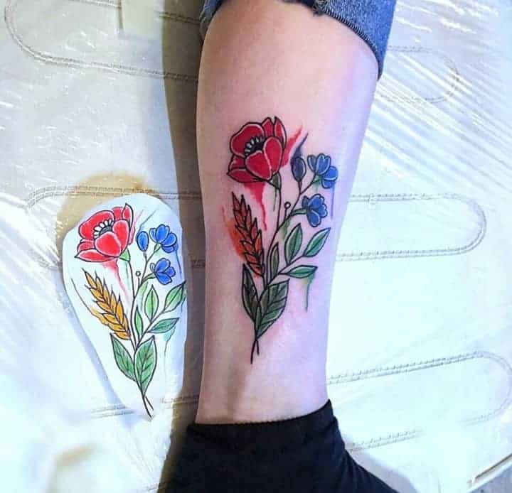 Кольорові татуювання внизу ноги виглядають дуже жіночно і романтично. Якщо стиль одягу дами вільний і не передбачає суворого дрес-коду, то будь-які орнаменти в кольорі здатні лише підкреслити красу ніг.