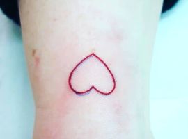 Серце. Дуже просте татуювання у вигляді серця на зап’ясті, просто підкреслює обриси фігури, дуже простий дизайн для тих, хто любить такий стиль. Серце характеризує любов і пристрасть. Биття органу як символ самого життя.