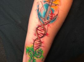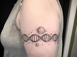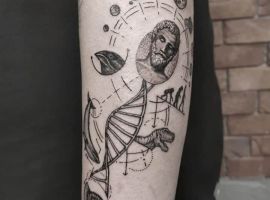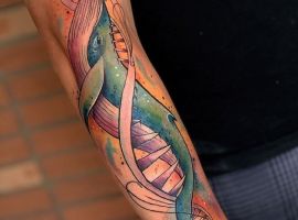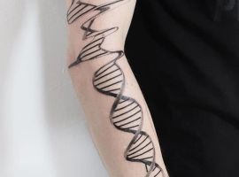 - Творчість. Тату ДНК відмінно підійде творчим натурам: художникам, музикантам, поетам, які за допомогою цього символу можуть, не кажучи, заявити про себе, як про людину, яка знає толк у своїй справі.