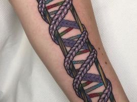 - Творчість. Тату ДНК відмінно підійде творчим натурам: художникам, музикантам, поетам, які за допомогою цього символу можуть, не кажучи, заявити про себе, як про людину, яка знає толк у своїй справі.