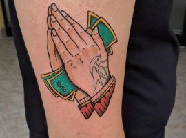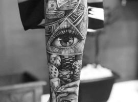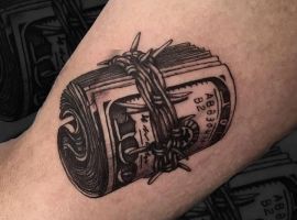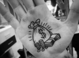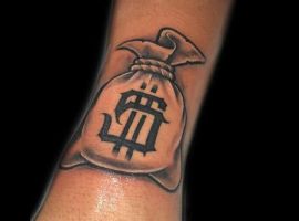 - Тату гроші також вибирають ті, хто поки не досяг матеріального благополуччя, але прагне до цього. В цьому випадку татуювання виступає стимулятором. Дивлячись на нього, людина згадує про поставлені цілі, починає наполегливіше рухатися вперед. Ескіз підходить для початківця бізнесмена і кар’єриста, який володіє всіма якостями для досягнення успіху: наполегливістю, сміливістю, ініціативністю, впевненістю, цілеспрямованістю, працьовитістю.