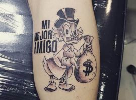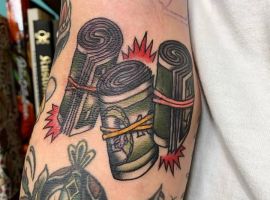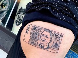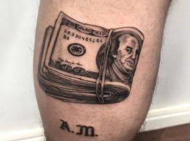 - Є ті, хто вкладає в татуювання гроші іронічне значення. В цьому випадку зображені на тілі долари виступають нагадуванням про те, що гроші – не найголовніше в житті, що щастя вимірюється іншими категоріями. Таке татуювання вибирають люди з оригінальним уявленням про життя, які не женуться за багатством, задовольняються тим, що мають. Для них важливіше не оболонка, а внутрішній зміст.