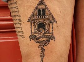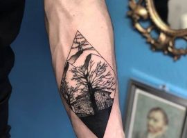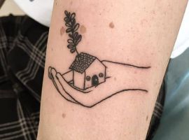 Татуювання з будинком – досить незвичайний натільний малюнок. Таким чином люди хочуть показати не тільки те, що для них багато значить місце, де вони народилися, що вони завжди будуть віддані близьким. Значення у татуювання будинок буде набагато глибше. Зображують не тільки сільські будиночки, а й готичні замки, споруди в стилі бароко. У будь-якому випадку майстри тату салону Альянс знайдуть для вас ідеальний ескіз, який відобразить точно те, що ви хочете сказати цим символом.