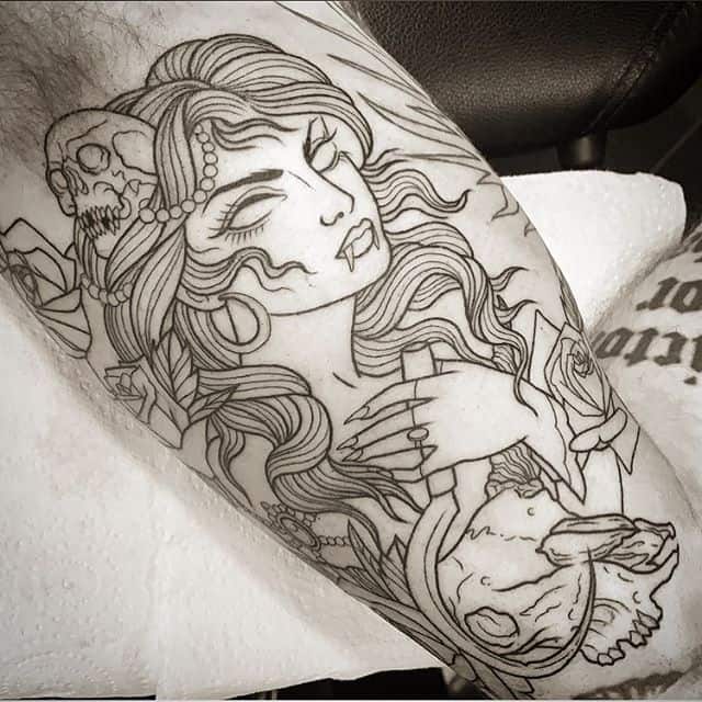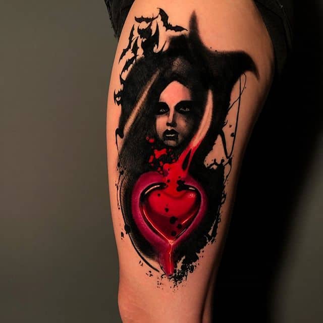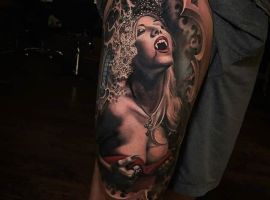 Всім любителям фантастики давно відомо, що вампір – це мрець, труп, який прокидається і живе вночі. У деяких джерелах можна прочитати, що він здатний перетворюватися на кажана або ворона. Вампір харчується людською кров’ю, по суті будучи паразитом, що живе за рахунок людей, висмоктуючи сили з живих. Виходячи з цієї характеристики, можна зробити висновки, що і в тату мистецтві зображення з вампіром матиме подібне значення.