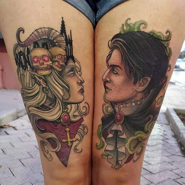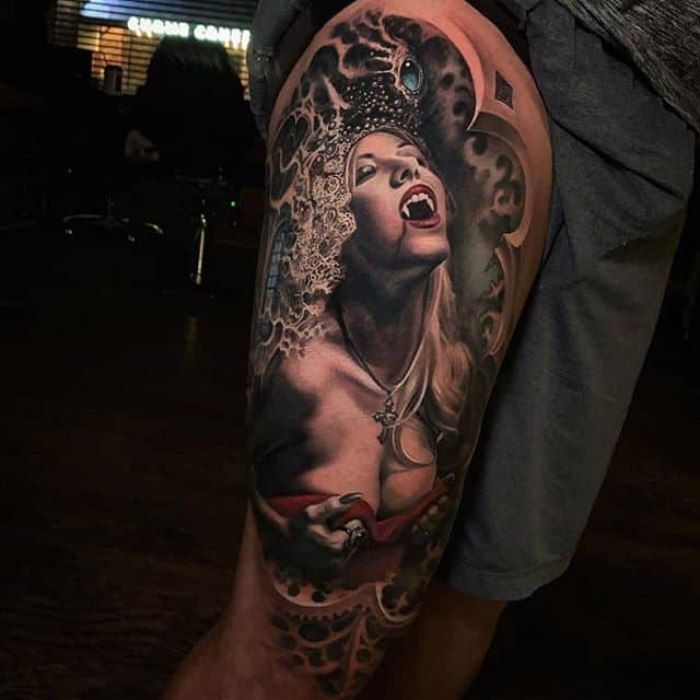 Граф Дракула – найвідоміший у світі вампір. Така людина дійсно існувала в XV столітті і була відома своєю жорстокістю. Саме його і використовували як прототип для романа, про головного вампіра всіх часів. Нібито, румунський князь продав душу дияволу, щоб стати безсмертним, і перетворився на вампіра. Про існування містичних істот, які зовні виглядають як бліді люди з довгими іклами, і харчуються людською кров’ю, оповіді існували ще в глибоку давнину, при чому в абсолютно різних народів по всьому світу. Тому така містична тема і сьогодні цікавить своєю загадковістю величезну кількість людей, багато з яких наносять на шкіру тату у вигляді вампірів.
