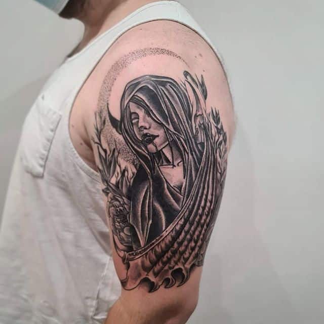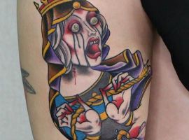 Звичайно, для виконання такої складної роботи, майстру знадобиться велика ділянка шкіри. Тому такі натільні малюнки наносять на плече, спину, груди або стегно. Виглядає це неймовірно ефектно і просто не може залишитися без уваги оточуючих. Майстри студії Альянс у Києві роблять ескізи на замовлення.