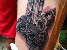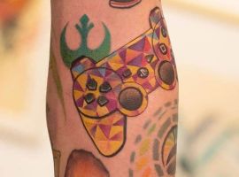 В іграх людина може відчути себе воїном, будівельником, водієм, міфічним персонажем … варіантів тисячі. Ігри породжують різні ідеї для фільмів, аніме і коміксів. Створюються вже цілі ігрові всесвіти, в яких користувачі об’єднуються в віртуальні «сім’ї». Але якщо ви не хочете вибрати в якості ідеї для татуювання фрагмент улюбленої гри або персонажу, то зверніть увагу і саме на татуювання джойстик.