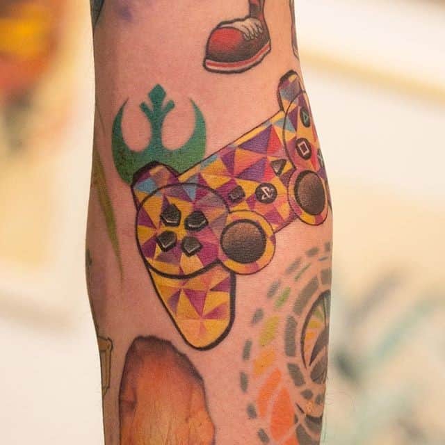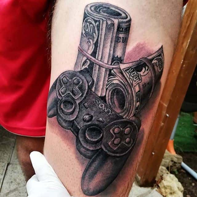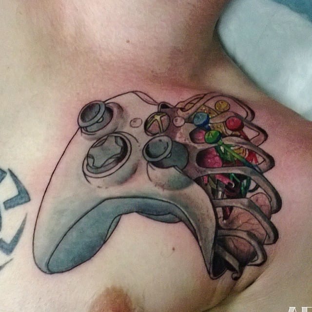 В іграх людина може відчути себе воїном, будівельником, водієм, міфічним персонажем … варіантів тисячі. Ігри породжують різні ідеї для фільмів, аніме і коміксів. Створюються вже цілі ігрові всесвіти, в яких користувачі об’єднуються в віртуальні «сім’ї». Але якщо ви не хочете вибрати в якості ідеї для татуювання фрагмент улюбленої гри або персонажу, то зверніть увагу і саме на татуювання джойстик.