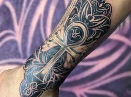 Анкх – ключ життя. Це магічний символ мудрості, ключ до таємних знань, сили і влади. Формується він з жіночих і чоловічих символів Ізіди і Орізіса, як союз життєвих принципів. Його форма може означати сонце, як єдність чоловічого і жіночого начал, а так само як ключ до езотеричних знань і нескінченного життя духу. Об’єднані хрест – символ життя, і коло – символ вічності, позначають вічне життя. Для християн Єгипту, Анкх символізував вічне життя, яке було подароване людині завдяки жертовній смерті Спасителя, і трактується як «хрест животворящий», що відкриває двері у вищий світ – світ божественного знання. Татуювання із зображенням Анкх символізують невичерпні життєві сили, це магічний символ мудрості, ключ до таємного знання, сили і влади.