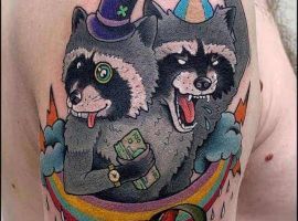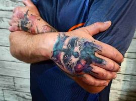 - Таке татуювання також може означати те, що людині подобається певний персонаж – єнот Ракета. Це герой з коміксів Marvel, який здобув популярність в 2014 році завдяки фільму «Вартові Галактики», завдяки своєму милому вигляду і бойовому характеру.
