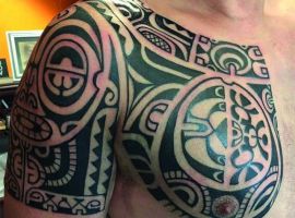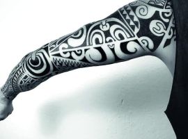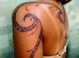 Полінезійська тату унікальна і неординарна. На тілі зображується химерний орнамент із зигзагів і геометричних фігур. Відразу ж така тату починає асоціюватися з різьбленням по дереву майстрів гряди полінезійських островів. У давнину в Полінезії такі татуювання могли наносити тільки чоловіки. При цьому саме зображення полинезийской тату відрізнялося в залежності від роду діяльності чоловіка і його прагнень. Наприклад, маски тики могли прикрасити тільки тіла мисливців і воїнів племені, малюнок акули – рибалок, сонце – мандрівників і мислителів.