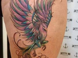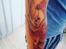 У натільному живописі татуювання фенікс стала популярним пізніше. На сьогоднішній день такий ескіз досить поширений і затребуваний. Крім красивої і яскравої картинки, присутній у татуювання глибокий сенс. Багато хто вірить, що такий знак на тілі здатний наділити людину потужною і магічною енергією. Тату птах фенікс значення для дівчат і хлопців буде мати однакове.