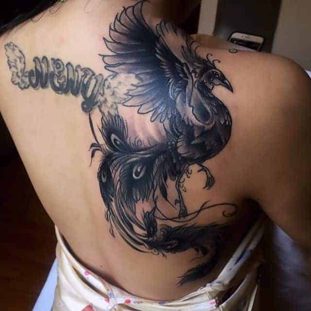 На сьогоднішній день найчастіше можна зустріти такі ідеї Жар птиця тату: