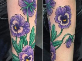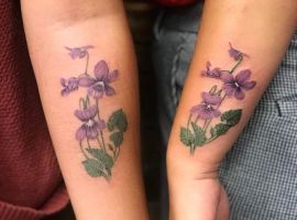 Фіалка може бути символом закоханості і романтичності натури. Дівчата часто вибирають малюнок, де зображено дві квіточки фіалки. Таке тату буде залучати в життя своєї власниці щирі взаємні почуття і допоможе утримати трепет і ласку у відносинах з коханим.