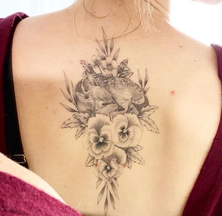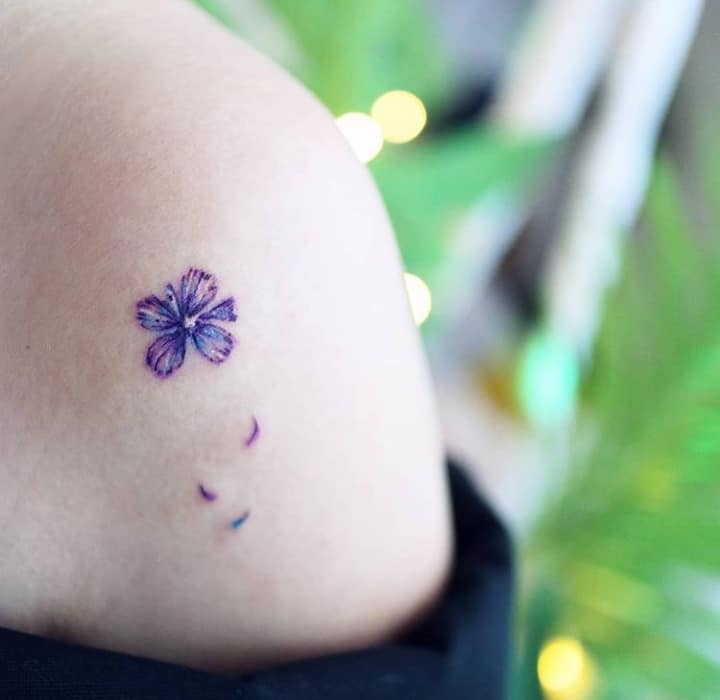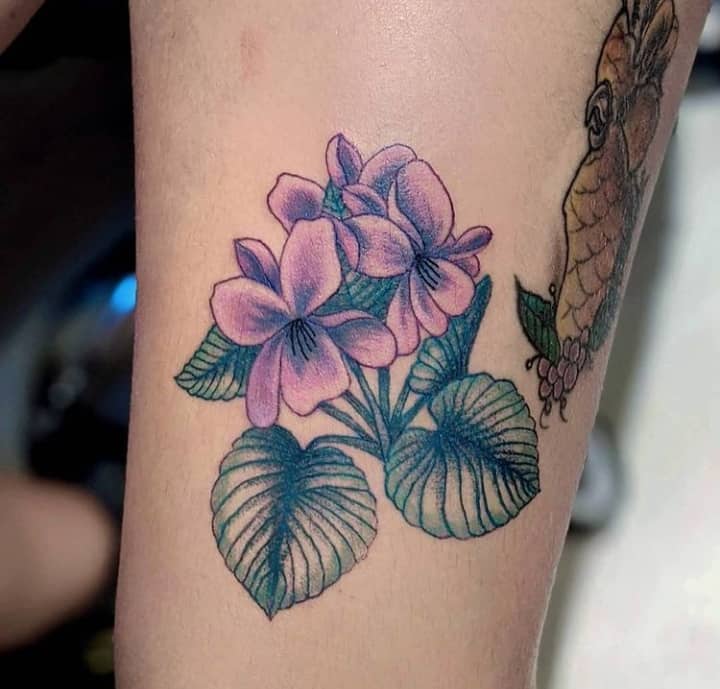 Фіалка може бути символом закоханості і романтичності натури. Дівчата часто вибирають малюнок, де зображено дві квіточки фіалки. Таке тату буде залучати в життя своєї власниці щирі взаємні почуття і допоможе утримати трепет і ласку у відносинах з коханим.