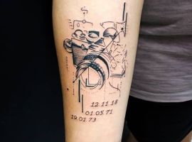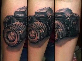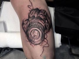 Але, звичайно ж, найчастіше такий малюнок на шкіру наносять професійні фотографи або ті, хто не уявляє собі життя без фото, як без хобі. До одного цього образу можна додати і інші елементи, які підходять за змістом і композицією. А досвідчені майстри салону Альянс у Києві створюють ескізи на замовлення.