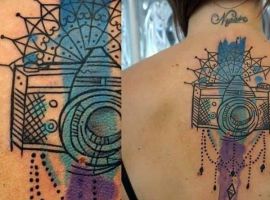 Але, звичайно ж, найчастіше такий малюнок на шкіру наносять професійні фотографи або ті, хто не уявляє собі життя без фото, як без хобі. До одного цього образу можна додати і інші елементи, які підходять за змістом і композицією. А досвідчені майстри салону Альянс у Києві створюють ескізи на замовлення.