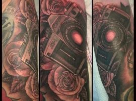З іншого боку, можна виконати татуювання фотоапарат у великому обсязі або в чорно-білому реалістичному стилі, або в яскравому кольоровому варіанті, з доповненням яскравих деталей.