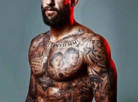 - Златан Ібрагімович. Тіло шведа вражає своєми тату. Тут є и левы, надписи.