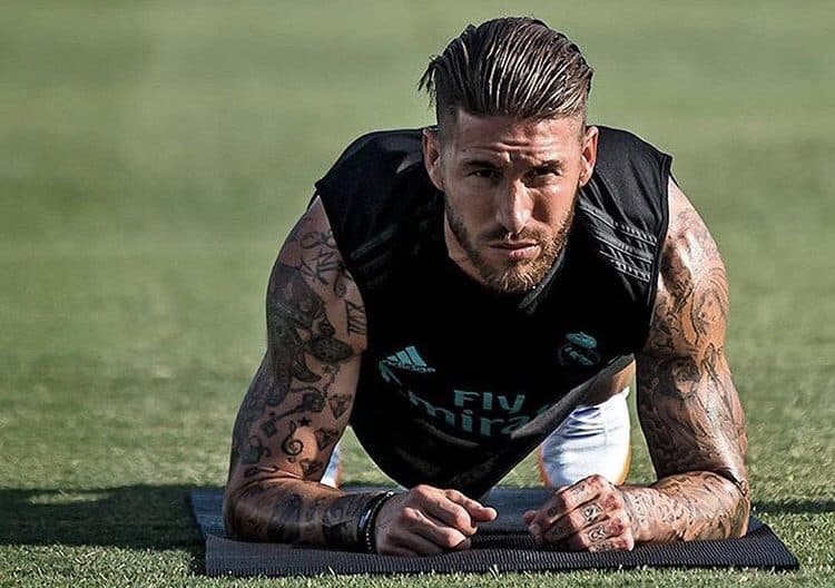 - Серхио Рамос. У футболіста на тілі «всесвіт»: зірка Давида, єдинорог, надписи.