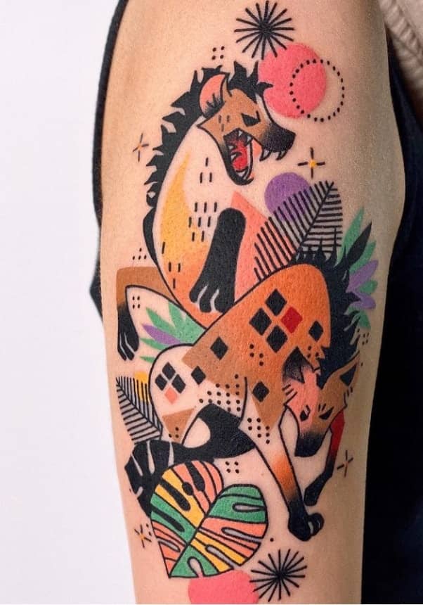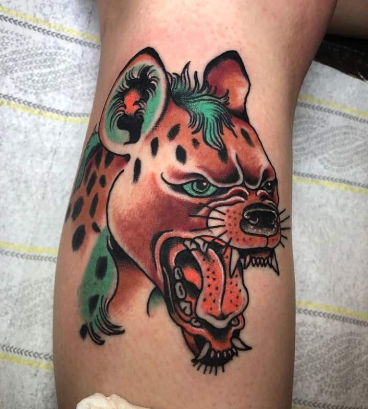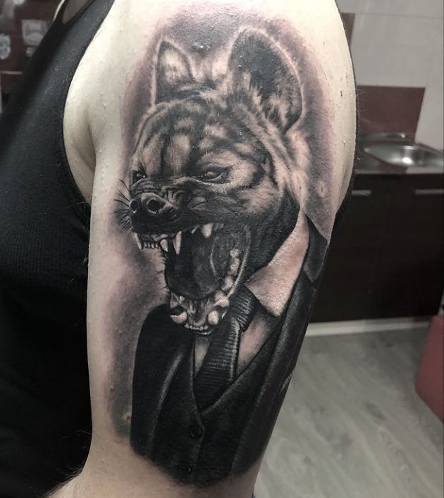 Ідея тату у вигляді гієни підійде людині хитрій і спритній, дотепній і цілеспрямованій. Це людина, яка вміє маніпулювати іншими, їй не властива зайва скромність, вона знає собі ціну і вміло використовує свої сильні сторони. Така людина може хитро домагатися свого, використовуючи всі можливі методи. Вона завжди викрутиться з будь-якої ситуації і не обтяжує себе совістю.