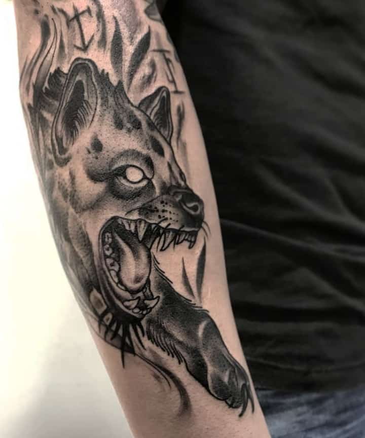 З іншого боку, гієна виглядає дуже незвично і навіть лякаюче. Тому їй часто приписували різні магічні здібності. Її використовували як емблему різні шамани і містики. Тому в якості татуювання на шкірі цей образ може говорити про проникливість свого власника, його бажання «читати» людей, як розкриту книгу, розбиратися в людях і використовувати це вміння в своїх цілях.