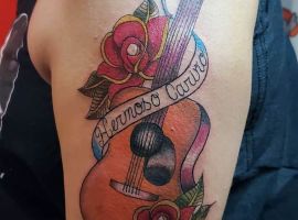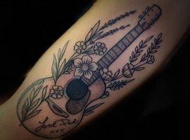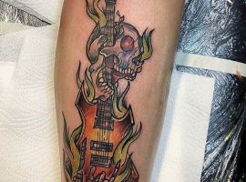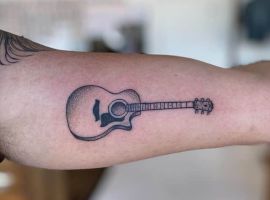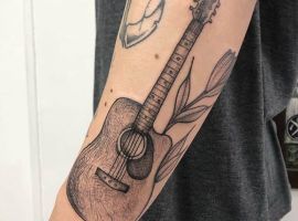 Гітара тату – це вибір творчих, неординарних людей, для яких одна з головних пристрастей в житті – це музика. Основне значення цієї тату – творчість і натхнення. Але як саме це реалізується вирішувати самій людині. Для одних гітари на тілі означають дружні посиденьки біля багаття в оточенні близьких друзів, інші ж вважають, що така тату-оберіг дозволить стати відомим і підкорювати світ оглушливими концертами. Але майстри тату салону Альянс готові виконати будь-який ескіз татуювання гітара відповідно до ваших побажань!