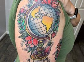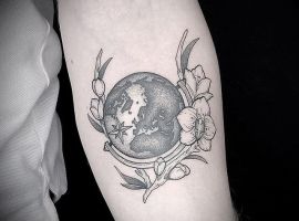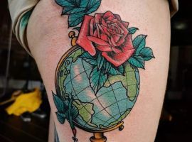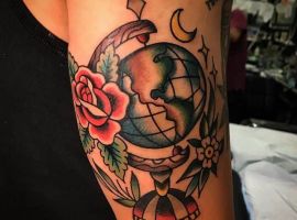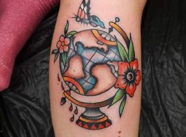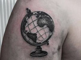 Татуювання глобус (земна куля) – досить цікавий і нестандартний варіант. Зазвичай таке татуювання вибирають люди, які дуже люблять подорожувати і хочуть розповісти про це всьому світу. А, можливо, що людині просто дуже подобається географія або їй не все одно, яка доля буде далі у нашої планети. У будь-якому випадку виглядати такий натільний малюнок буде нестандартно. А майстри тату салону Альянс створюють для вас оригінальний ескіз, який відобразить те, що ви хочете сказати своїй новій тату.