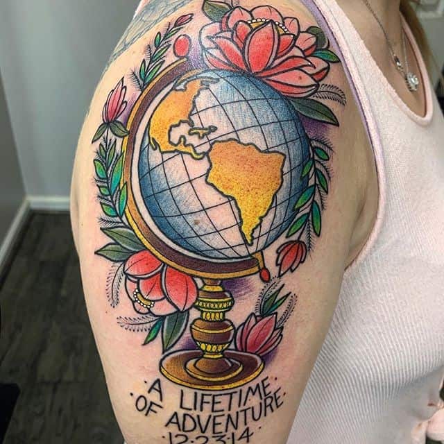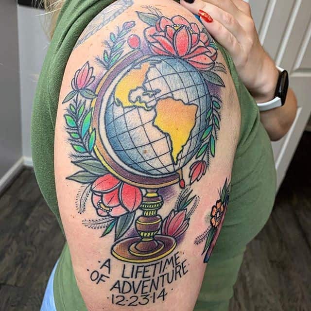 Татуювання глобус відмінно підійде для людей, які не можуть прожити без подорожей в далекі країни. Це люди волелюбні і активні, в пошуку пріоритетів яких значиться бажання побачити весь світ на власні очі. Можливо, що ви хочете потрапити у найвіддаленіші куточки Землі або здійснити кругосвітню подорож? Тоді сміливо вибирайте тату з глобусом, адже воно стане для вас найкращим талісманом і завжди буде нагадувати про це бажання.