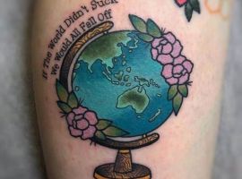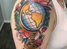 Татуювання глобус (земна куля) – досить цікавий і нестандартний варіант. Зазвичай таке татуювання вибирають люди, які дуже люблять подорожувати і хочуть розповісти про це всьому світу. А, можливо, що людині просто дуже подобається географія або їй не все одно, яка доля буде далі у нашої планети. У будь-якому випадку виглядати такий натільний малюнок буде нестандартно. А майстри тату салону Альянс створюють для вас оригінальний ескіз, який відобразить те, що ви хочете сказати своїй новій тату.