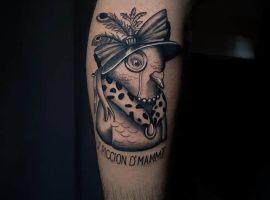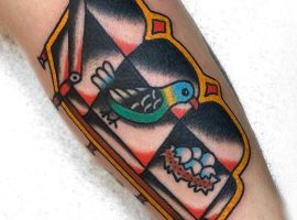 Чоловіки обирають для великих зображень спину або груди. Маленьку татушку можна виконати як на руці, так і на шиї.