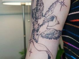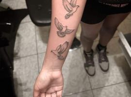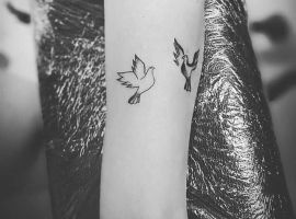 Що означає тату з летять голубами потрібно визначати саме по самого виду татуювання. Це може бути, як надія, добра віра, добрі вісті, прагнення до вільного життя, так і спогади про рідну людину.