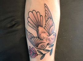 Красиво виглядають і птиці в акварельного техніці. Особливість її в недбалих мазках фарб, патьоках. Тату стає справжнім витвором мистецтва.