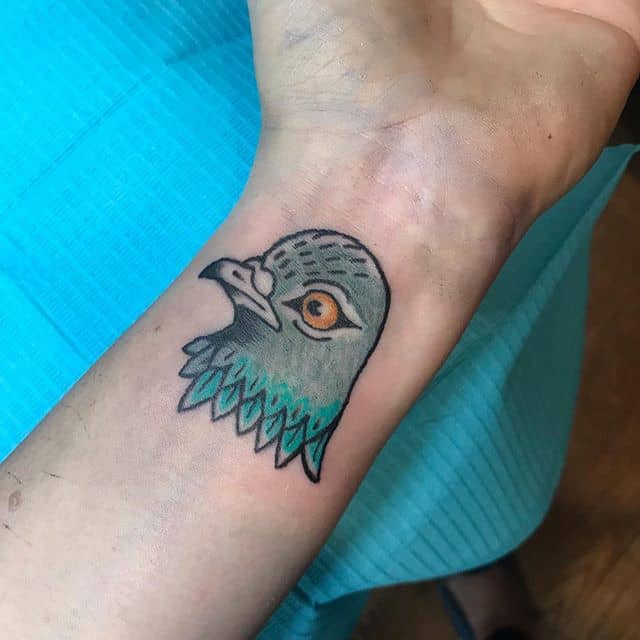 Може призначатися тату голуб для абсолютно різних людей. Набити зображення з красивою птахом можуть люди, які прагнуть до свободи, не переносять правил і будь-яких сковували їх уз. У той же час птах, доповнена іменами закоханих, сердечком або трояндою – це знак тих, хто ж знайшов свою другу половинку і має намір зберігати їй вірність усе життя.