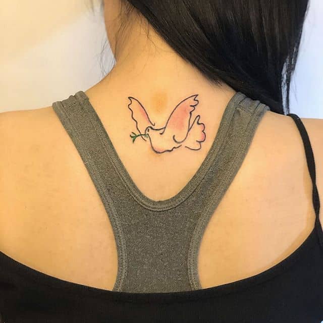 Ще один сенс тату голуба на тілі – це світ. У багатьох країнах птах, що тримає в дзьобі гілочку оливкового дерева, означає доброзичливий настрій, спокій.