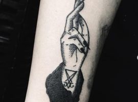- Татуювання, які виглядають, подібно містичним символам. Дані зображення безпосередньо пов’язані з чаклунством, відьмами, таємними знаннями і магією. Рунічні символи, Геометричні зображення – все це входить в дану категорію татуювань. Ставлення до готичного татуювання в суспільстві поки досить суперечливе.