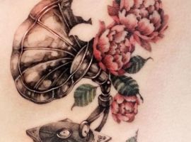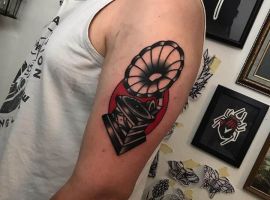 Зрозуміло, що і тату грамофон буде виглядати цікаво. Прилад з’явився відносно недавно, тому історичних зведень про нього практично не присутне. Не можна сказати, що і значення, яким володіє грамофон, буде філософським або глибоким.
