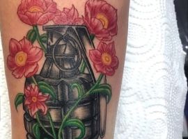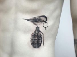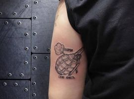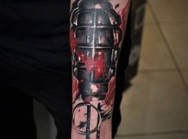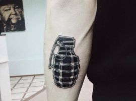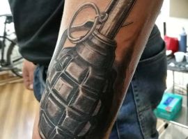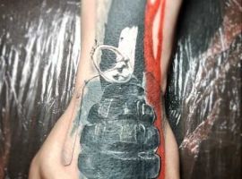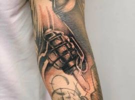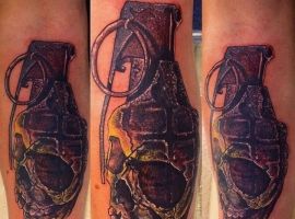 Тема татуювань з різною зброєю стрімко набирає популярність. Цікаво виглядає татуювання граната, вибухівка, при цьому вони можуть бути як самодостатнімі малюнками, так і доповнювати або поєднуватися з іншими елементами.