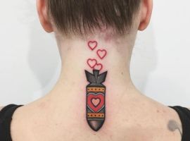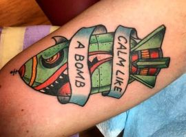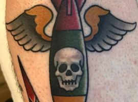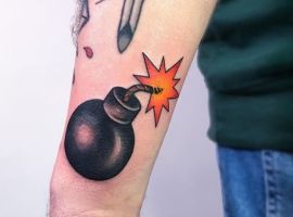Тату бомби з крилами – стильна прикраса тіла. Значить такий малюнок то, що людина завжди зможе приборкати свій характер, а вибуховий характер направити в мирне русло.