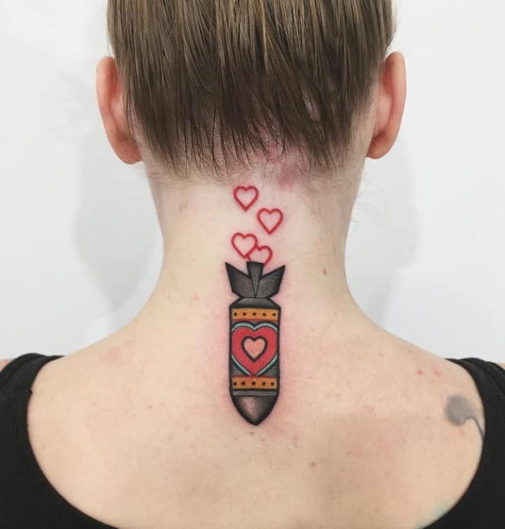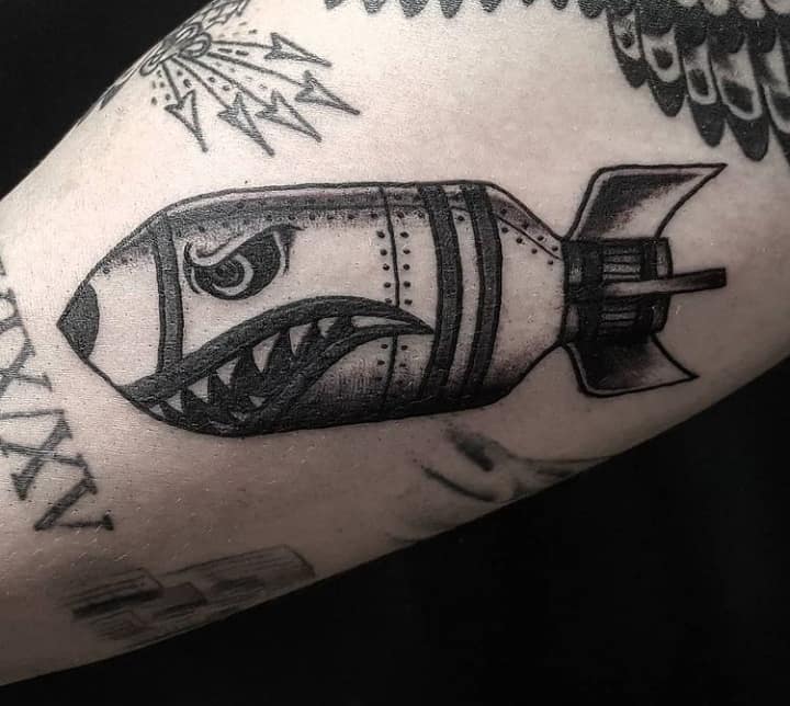 Тату бомби з крилами – стильна прикраса тіла. Значить такий малюнок то, що людина завжди зможе приборкати свій характер, а вибуховий характер направити в мирне русло.