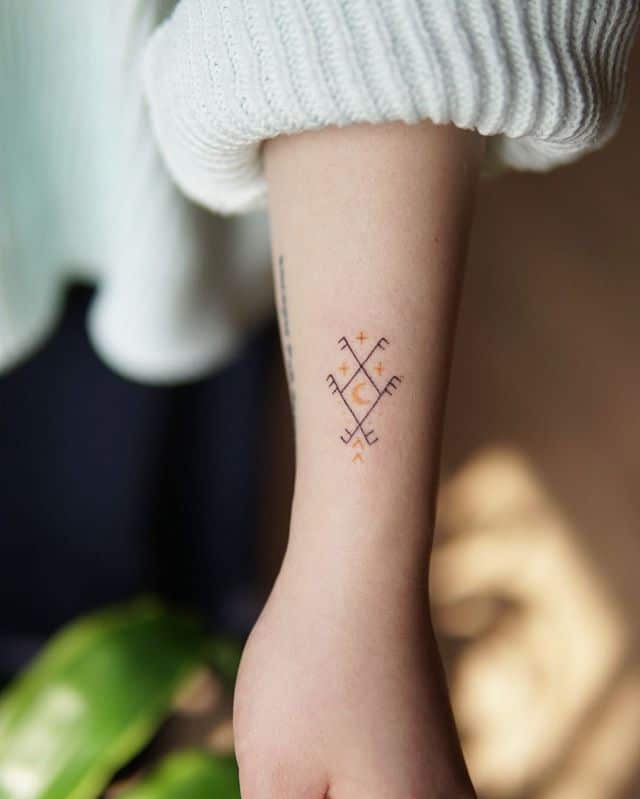 - Кристал. Позначає стабільність, сталість. Власник тату твердий у своїх намірах, не відступає від мети.