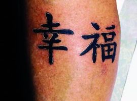 Ієрогліф удача татуювання, Щастя (японський: 幸 (sachi) або 福 (fuku); китайський: 福 (Fú)), дивовижний за своєю дією. Він дарує позитивні зміни тільки в тій області, в якій людина хотіла б їх отримати. Але не варто думати, що іншим областям життя він зашкодить. Наприклад, якщо людина хоче нарешті зустріти свою другу половинку, то такий ієрогліф притягне до нього щасливі відносини і неземну любов. Але в той же час він не зруйнує гарну кар’єру або довірчі відносини з близькими людьми. Погодьтеся, дія ієрогліфа дуже зручна. Китайський ієрогліф щастя складається з двох частин. У лівій розташовується вівтар, який є інструментом божественного звернення З правого боку розташовано достаток, яке допомагає залучати все блага в життя.