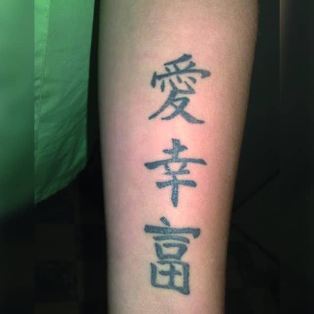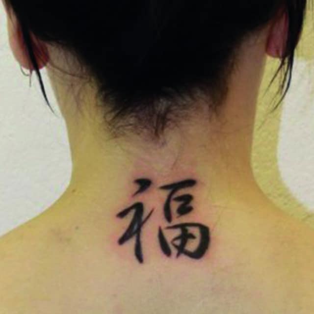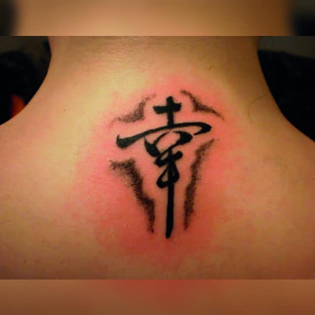 Ієрогліф удача татуювання, Щастя (японський: 幸 (sachi) або 福 (fuku); китайський: 福 (Fú)), дивовижний за своєю дією. Він дарує позитивні зміни тільки в тій області, в якій людина хотіла б їх отримати. Але не варто думати, що іншим областям життя він зашкодить. Наприклад, якщо людина хоче нарешті зустріти свою другу половинку, то такий ієрогліф притягне до нього щасливі відносини і неземну любов. Але в той же час він не зруйнує гарну кар’єру або довірчі відносини з близькими людьми. Погодьтеся, дія ієрогліфа дуже зручна. Китайський ієрогліф щастя складається з двох частин. У лівій розташовується вівтар, який є інструментом божественного звернення З правого боку розташовано достаток, яке допомагає залучати все блага в життя.
