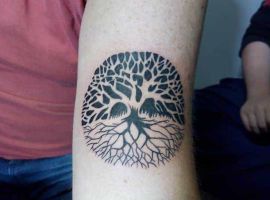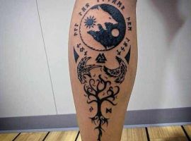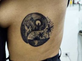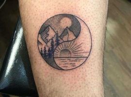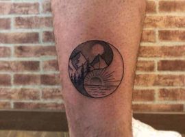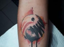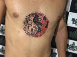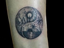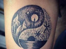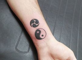Символ Інь Ян вперше з’явився більше 1000 років тому в давньокитайської міфології, і являв собою модель світобудови – контакт тіні і світла, існує теорія, що китайці перейняли його від буддистів. Знак має безліч значень, так як містить в собі чоловіче і жіноче начало. Татуювання з ним актуальні десятиліттями, як символ одвічної боротьби протилежностей, їх єднання. В силу свого символізму підходять людям різних віросповідань. Чорно-біле виконання добре виглядає на всіх типах шкіри.