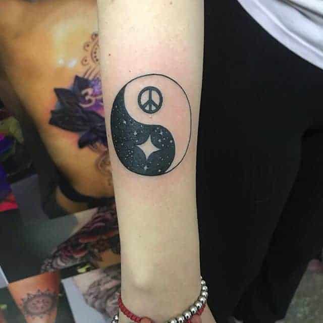Прийнято зображати татуювання інь янь в колі, що означає Нескінченність.