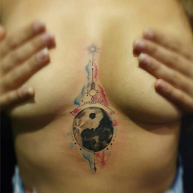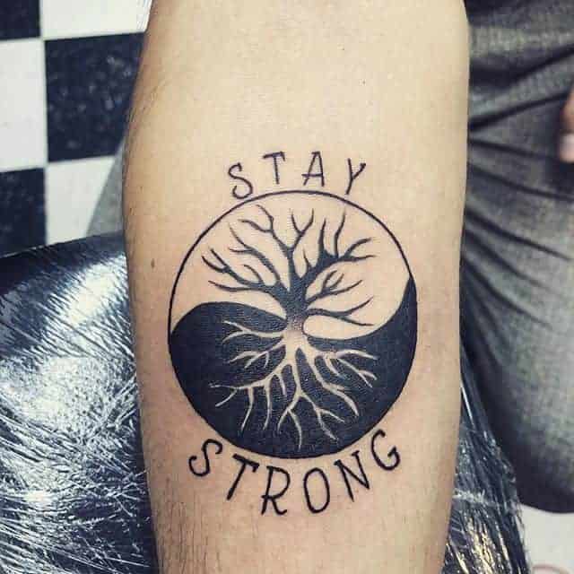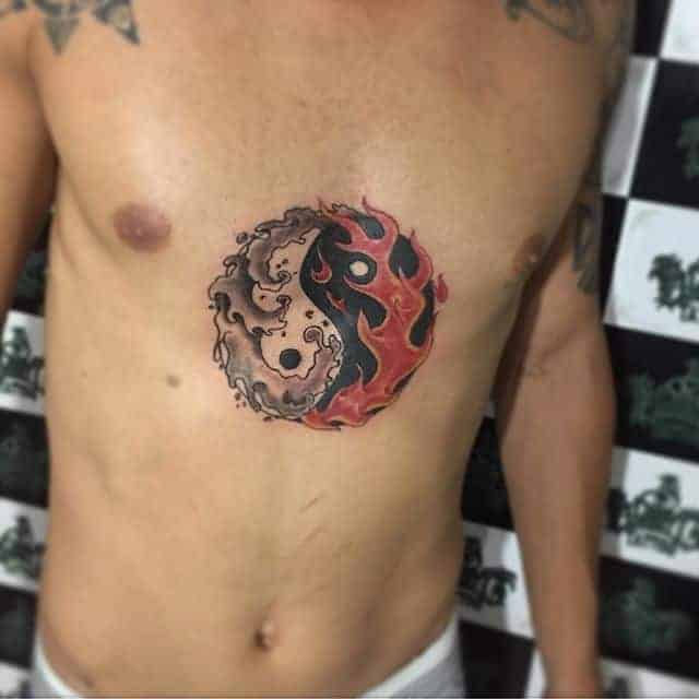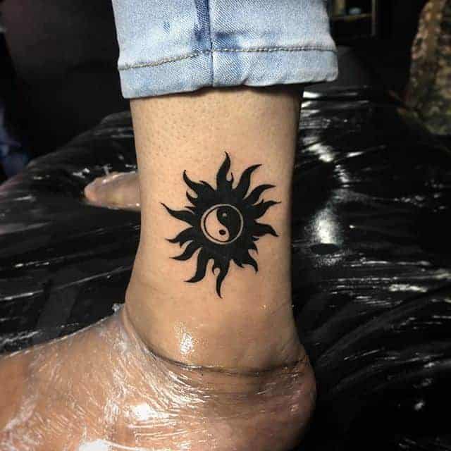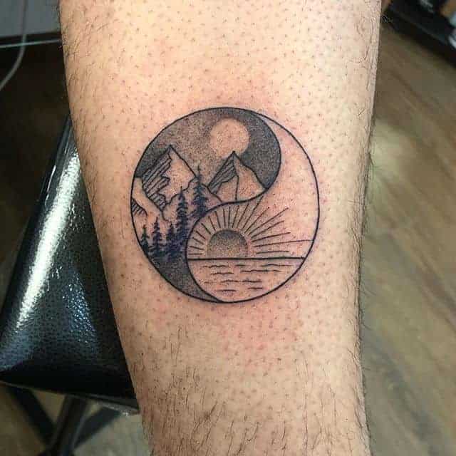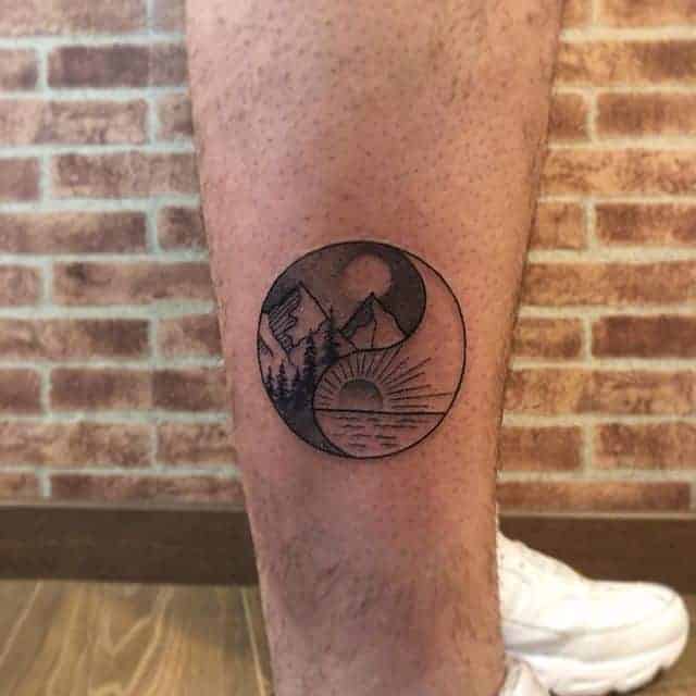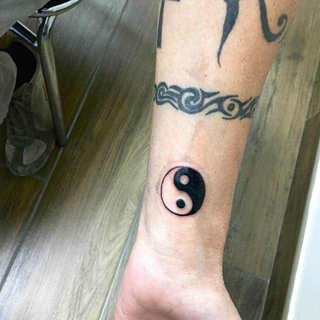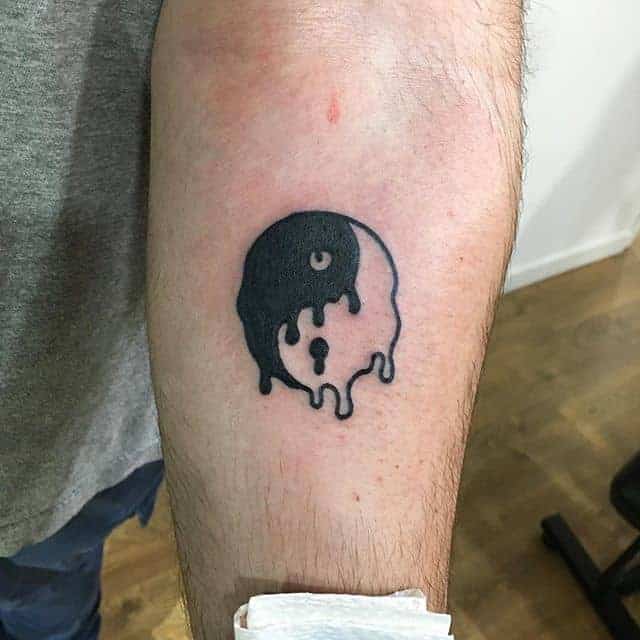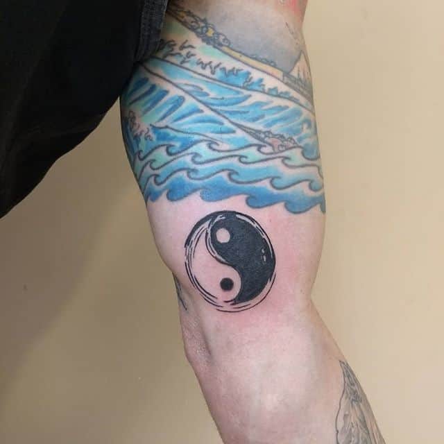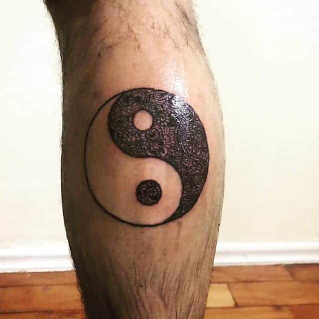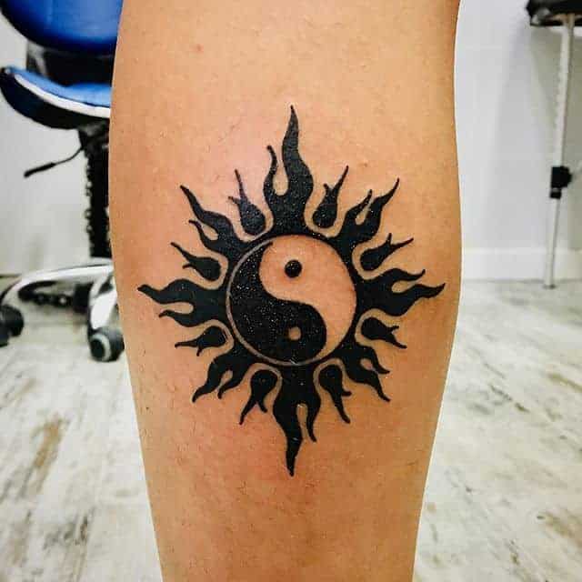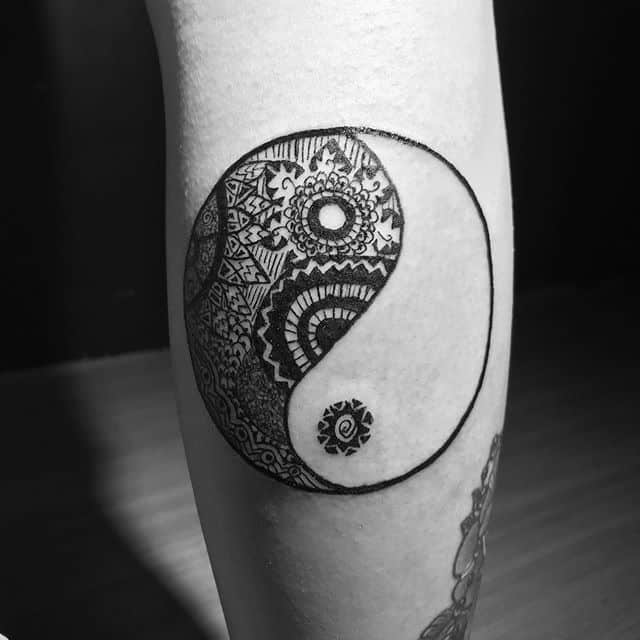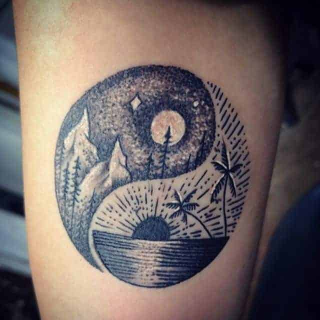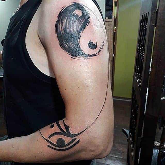 Символ Інь Ян вперше з’явився більше 1000 років тому в давньокитайської міфології, і являв собою модель світобудови – контакт тіні і світла, існує теорія, що китайці перейняли його від буддистів. Знак має безліч значень, так як містить в собі чоловіче і жіноче начало. Татуювання з ним актуальні десятиліттями, як символ одвічної боротьби протилежностей, їх єднання. В силу свого символізму підходять людям різних віросповідань. Чорно-біле виконання добре виглядає на всіх типах шкіри.